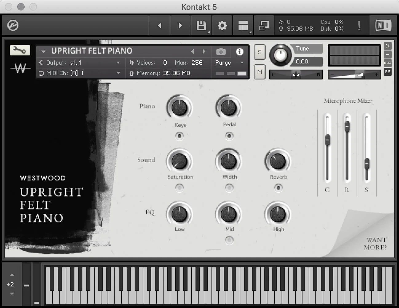 The Westwood Upright Felt Piano is a unique and intimate Kontakt-based instrument that captures the warm, muffled tone of an upright piano with a felt strip placed between the hammers and strings. Recorded in the crypt of a church, this library offers a distinct character perfect for alternative film scores, folk, and ambient music. It was sampled using vintage, high-quality microphones and includes multiple microphone positions that can be blended to achieve a range of sounds, from a dry, close tone to a more lively room sound.